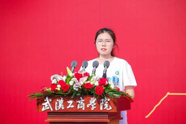 管理学院2023届毕业生桂羽勤作为毕业生代表发言。已考取国家“双一流”建设高校研究生的她,分享了自己在大学期间的成长经历与收获。她感恩母校为自己提供广阔的学习发展平台,感谢老师的悉心指导、亲友的关怀鼓励,回顾了大学期间参加学科竞赛、复习考研等奋斗历程,并由此向毕业生发出倡议:“饮水思源,不忘师恩!即将离校之际,让我们怀着对母校的爱和不舍,怀着心中的梦想和希望,奔赴全新的征程,在新的青春赛道上奋力奔跑,努力成为新时代奋勇前进的搏击者。”