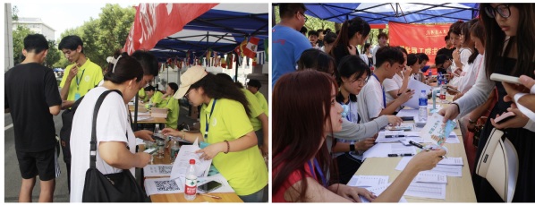 图为迎新现场师生志愿者为新生和家长答疑解惑 摄影:闵小雪