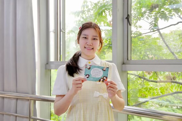 图为陈文婷手拿大一时写给自己的一张明信片 摄影:李宇曦