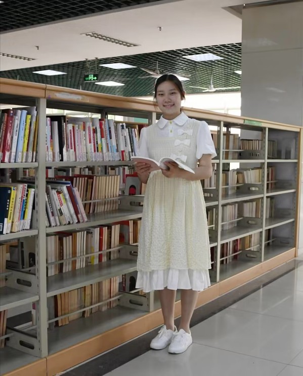 图为陈文婷在图书馆看书 摄影:李宇曦