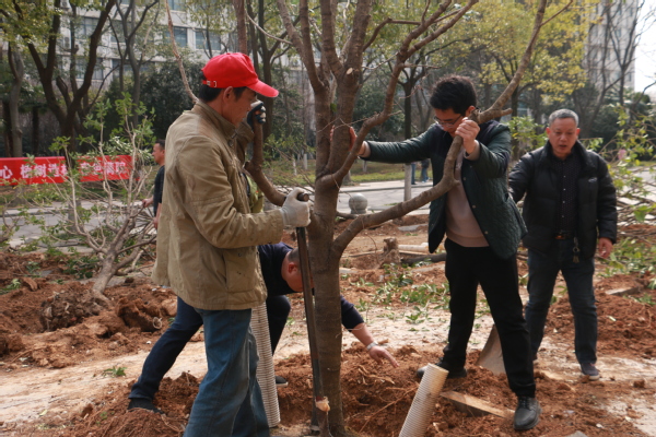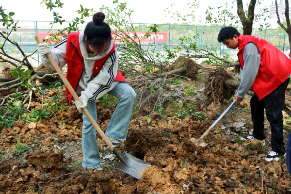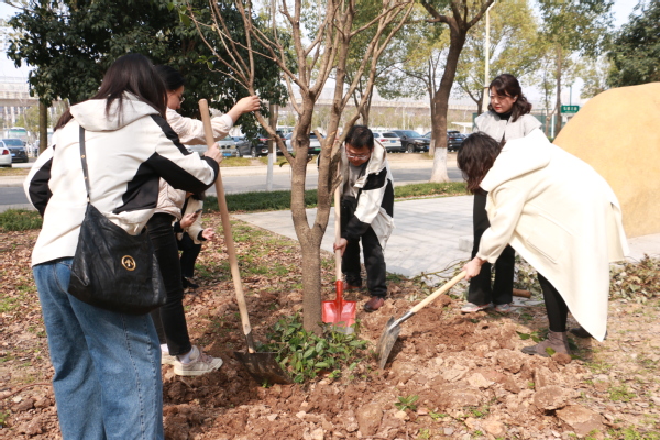 新闻中心讯(记者 杨培 杨小婷 涂媛媛)“树根周围不能堆太多土,要注意松土,这样方便后期浇水。”3月12日下午,在beat365官方网站实验教学中心附近的一片绿化林里,学校校长孔建益手握铁锹,一边给新种的树木培土,一边和老师们交流着种树的细节。