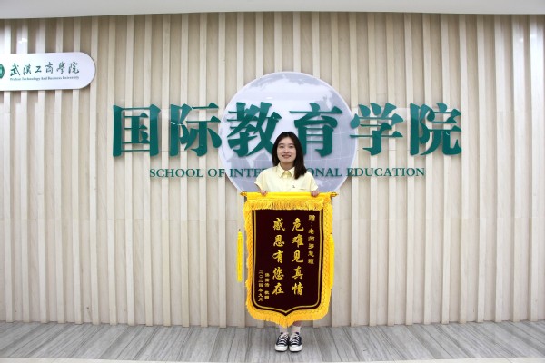 图为国际教育学院罗慧颖老师与锦旗合影 摄影:张祎然