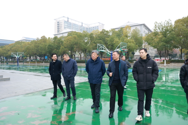 图为张俊副校长、左宗文副校长和亓小林校助带队开展春季开学及安全工作检查 摄影:芮雨欣