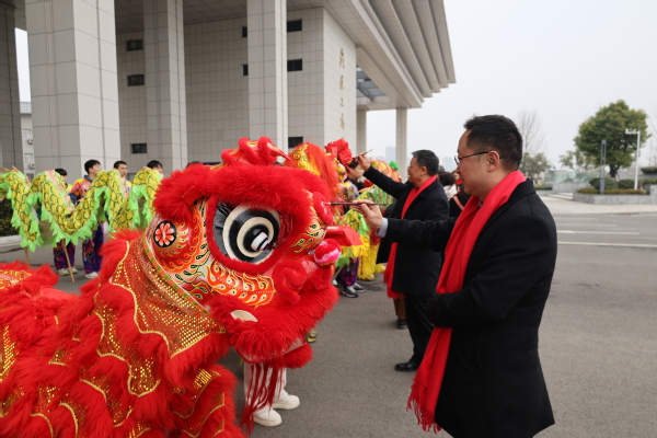 学校董事长彭秀春,副校长刘生元、桂裕清、张俊、赵北平一同为龙狮点睛,副校长左宗文主持巡游活动。