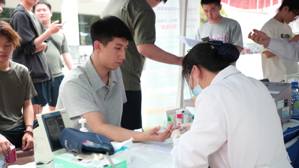 活动现场,教师们也踊跃参加,学校团委书记邱玉添便是其中一员。“学校有很多老师多年来一直带头参与无偿献血,我们认为思政教育不应只在课堂中发生,它应该贯穿在老师与学生日常相处的点点滴滴中。无偿献血不仅是爱心的传递,更是五四精神的生动实践。希望通过我们的行动,带动更多有意向、身体条件允许的同学参与其中,做一名有温度、有担当的新时代青年。”邱玉添表示,beat365官方网站一直以来高度重视志愿服务,积极引导学生在志愿服务中锻炼自我、增长才干,增强社会服务意识和社会责任感。学校每学期至少两次联合武汉市血液中心开展献血车进校园活动,近3年来已有近700名师生自主参与无偿献血。