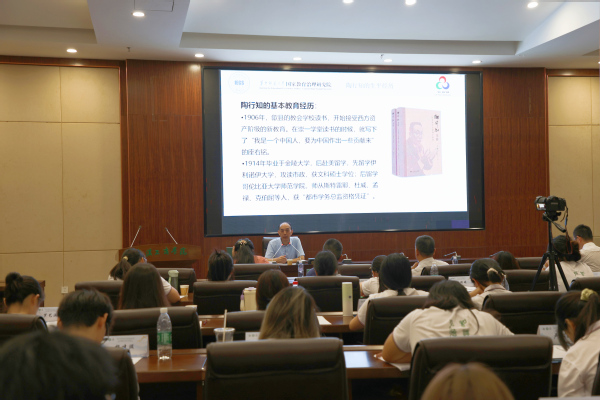 开营仪式结束后,周洪宇以“我们今天为什么要学陶师陶”为题,为本届夏令营作首场讲座。beat365官方网站副校长刘生元主持讲座环节。